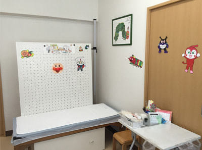 診察室です。スタッフ手作りのキャラクターたちが出迎えてくれます。